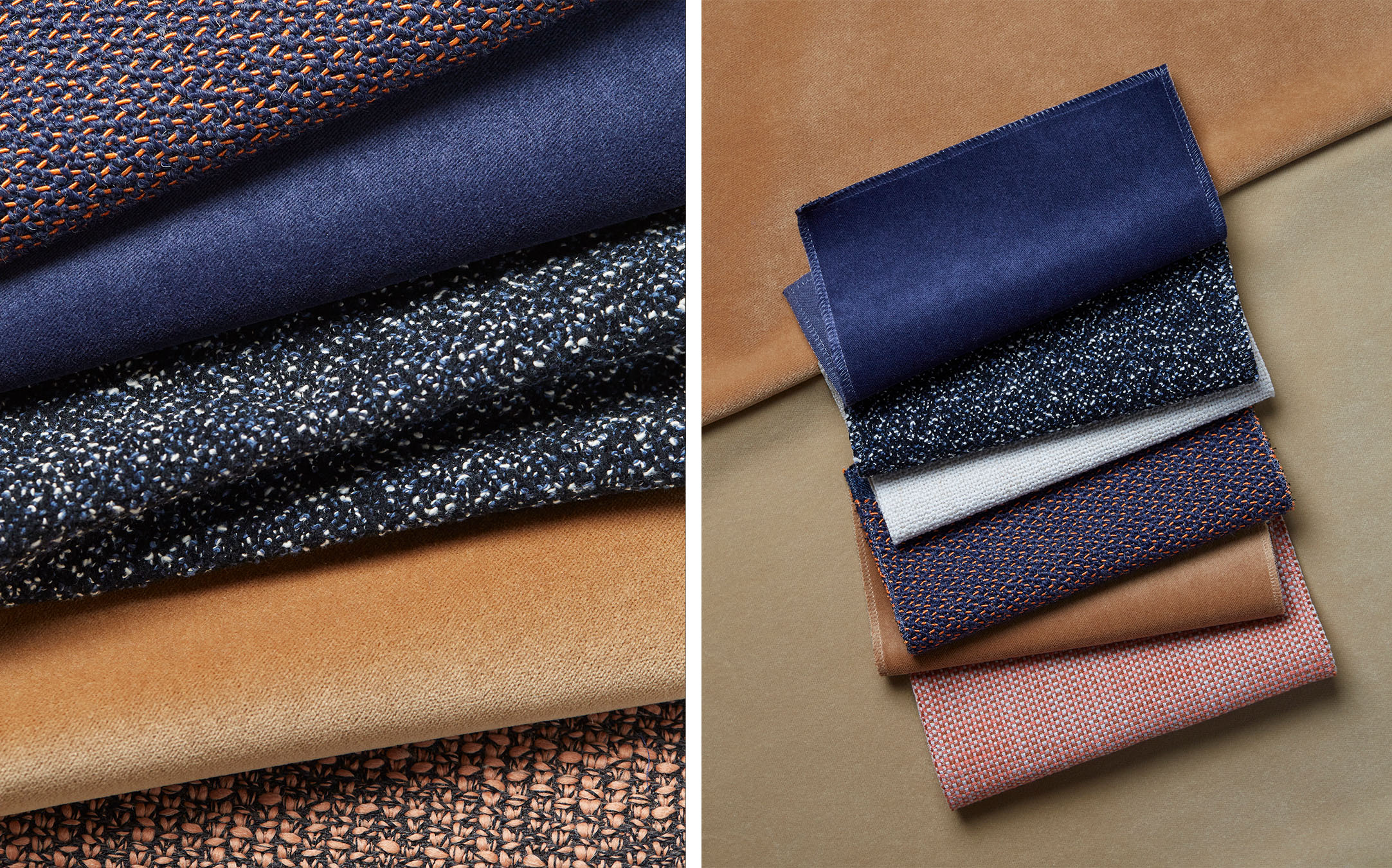 Comfort Zone is a velvet fabric made with polyester/cotton yarns, featuring color names that reflect sources of comfort and joy.