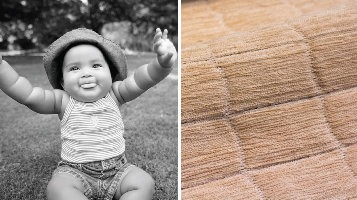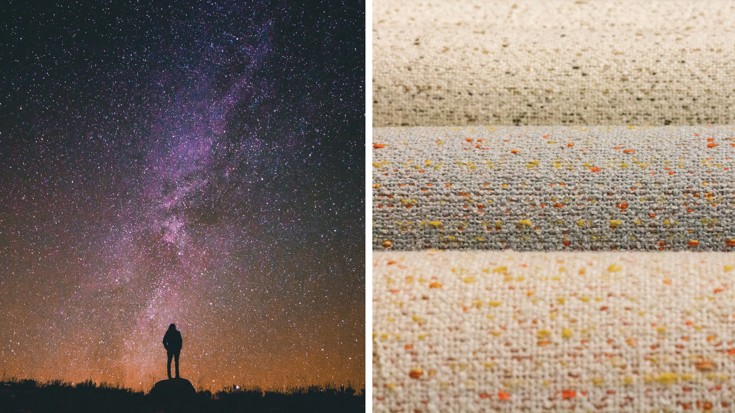 In Your Skin is all about celebrating that which makes each of us unique unto ourselves. Embodying the pure joy and exuberance of youth, individuality, creative expression, and the character and wisdom that come with age. Finding joy in the in-between moments of life. The patterns are a fun play on this concept: Matriarch is a twill weave with strong, bold, color combinations that evoke the wisdom that comes with age and experience. Laugh Lines is a joyful casual stripe pattern. Tattoo Toile is a modern play on the traditional Toile de Jouy, incorporating floral and hummingbird motifs common in tattoos. Chubby Baby is a soft and smushy matelassé tufted in a way that mimics the scrumptious arm rolls of a baby. Goosebumps is a nubby wool texture that feels like a warm hug. And Stardust is a reflection on the vastness of the cosmos and our small part in it.