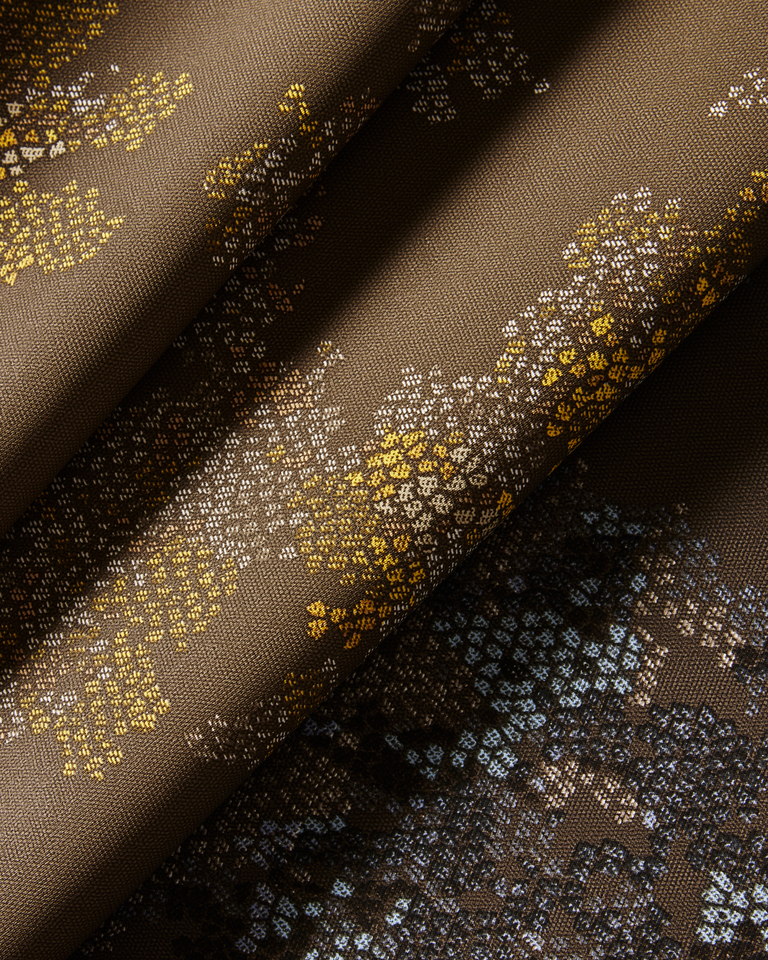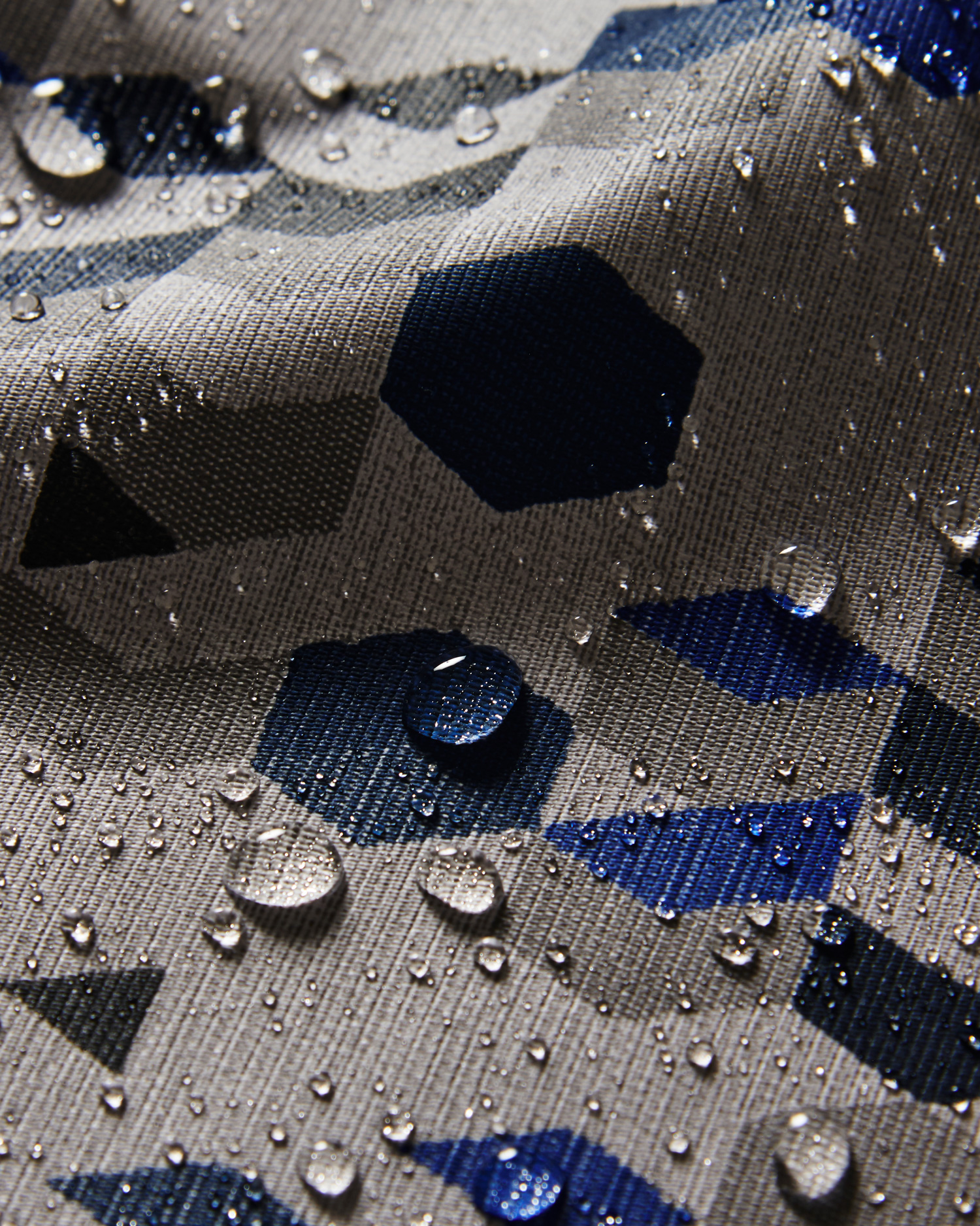 The notorious Digital Bloom 2.0 transforms from woven to an innovative printed coated construction. The pixelated pattern, reminiscent of floral blooms, continues to create a visual language where nature's elegance meets the precision of technology.